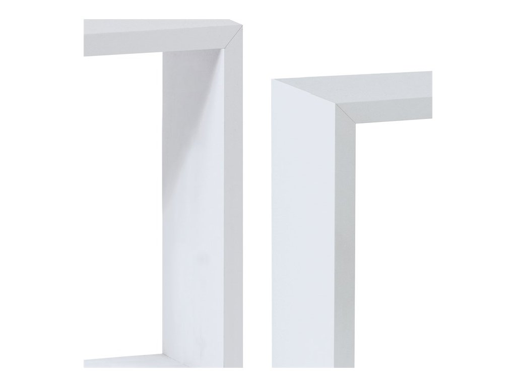 Sada tří nástěnných poliček v bílé matné barvě je vyrobena z MDF materiálu, který zajišťuje pevné a stabilní tělo. Jednoduchý hranatý tvar s čistými liniemi umožňuje univerzální použití v různých typech interiérů, od moderních po minimalistické. Poličky jsou baleny v ochranné fólii, což chrání povrch před poškozením během přepravy a usnadňuje instalaci. Díky různým rozměrům jednotlivých kusů lze vytvořit zajímavé kompozice na stěně, které poslouží k vystavení dekorací nebo praktickému uložení drobných předmětů. Povrch se snadno udržuje a je vhodný pro dlouhodobé používání v domácnostech i kancelářích.
