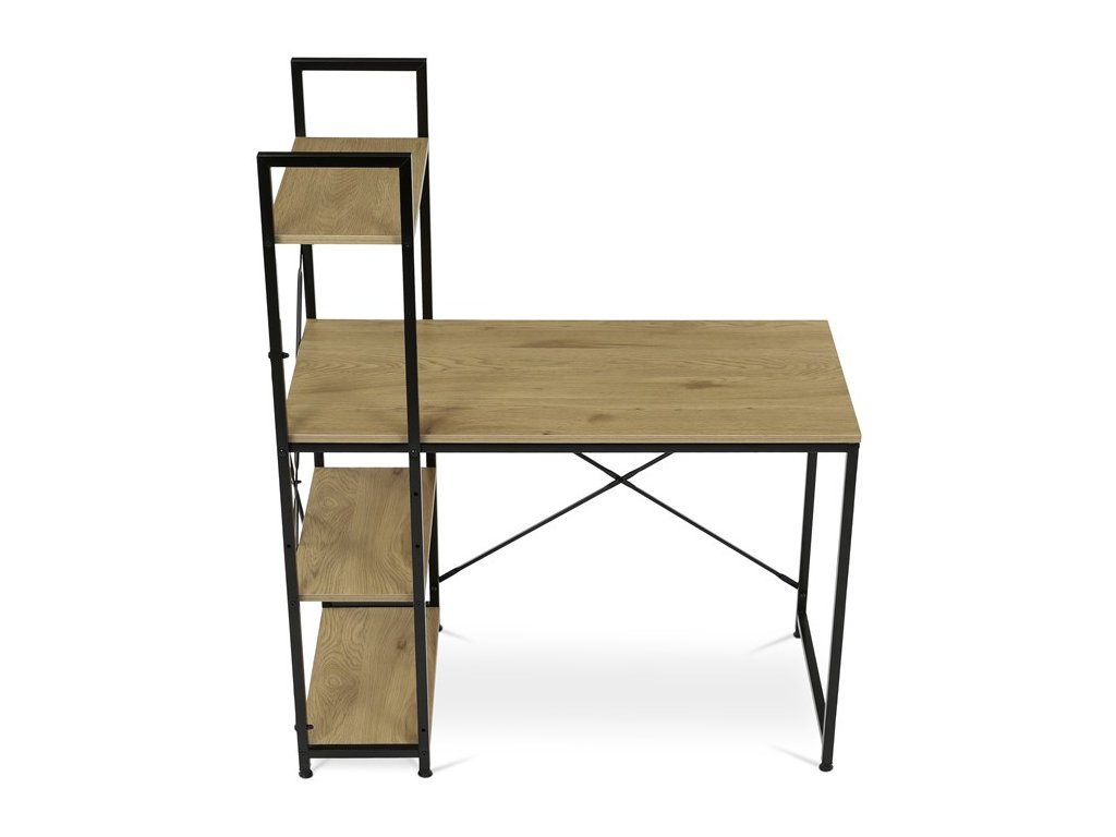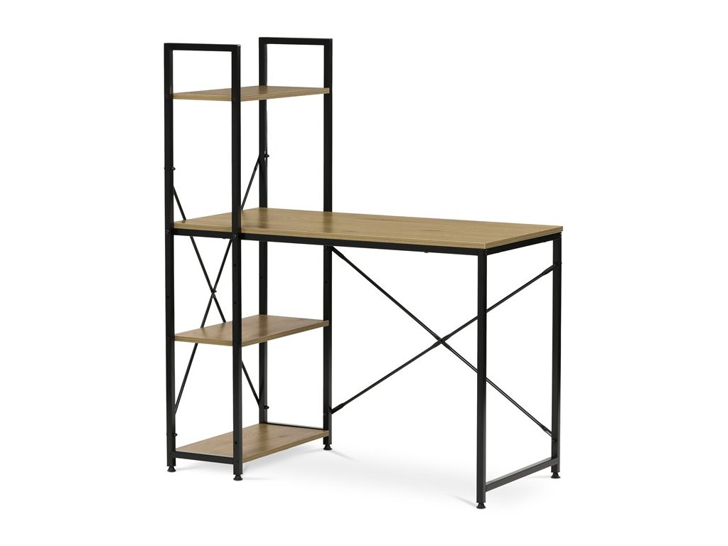 Pracovní stůl značky Autronic v industriálním stylu je skvělou volbou pro moderní kanceláře i domácí pracovny. Kombinace hnědého dekoru dubu a černé kovové konstrukce vytváří atraktivní a odolný design. Stůl nabízí praktický úložný prostor díky čtyřem přídavným policím, které poskytují dostatek místa pro knihy, dokumenty nebo dekorace. Matná povrchová úprava desky z MDF zajistí snadnou údržbu a elegantní vzhled. Tento funkční a stylový kus nábytku se skvěle hodí do interiéru, kde oceníte praktičnost a moderní vzhled. Rozměr police: 48 x 24,5 cm.