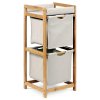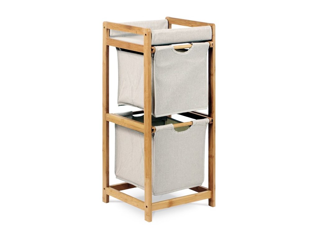 Multifunkční regál se dvěmi zásuvkami / boxy. Nosná konstrukce je vyrobena z masivního bambusu, lakovaného kvalitním trasparentním lakem. Bambus jako takový opdpuzuje vodu a touto povrchovou úpravou dosahuje velmi dobré voděodolnosti. Výsuvné boxy jsou vyrobeny ze středně hrubé látky v šedém odstínu se závěsným rámem z bambusu.Regál vhodný do koupelen, ale i do předsíní či místností, kde upotřebíte úložné prostory.Látkové boxy jsou prodyšné, jejich nosnost je až 3 kg, celková 6 kg. Ideálně regál k plné spokojenosti využijete k uložení ručníků, osušek nebo i části oblečení, popř. dalších věcí, dle potřeby.