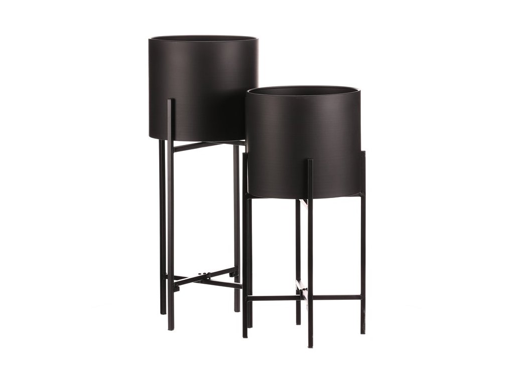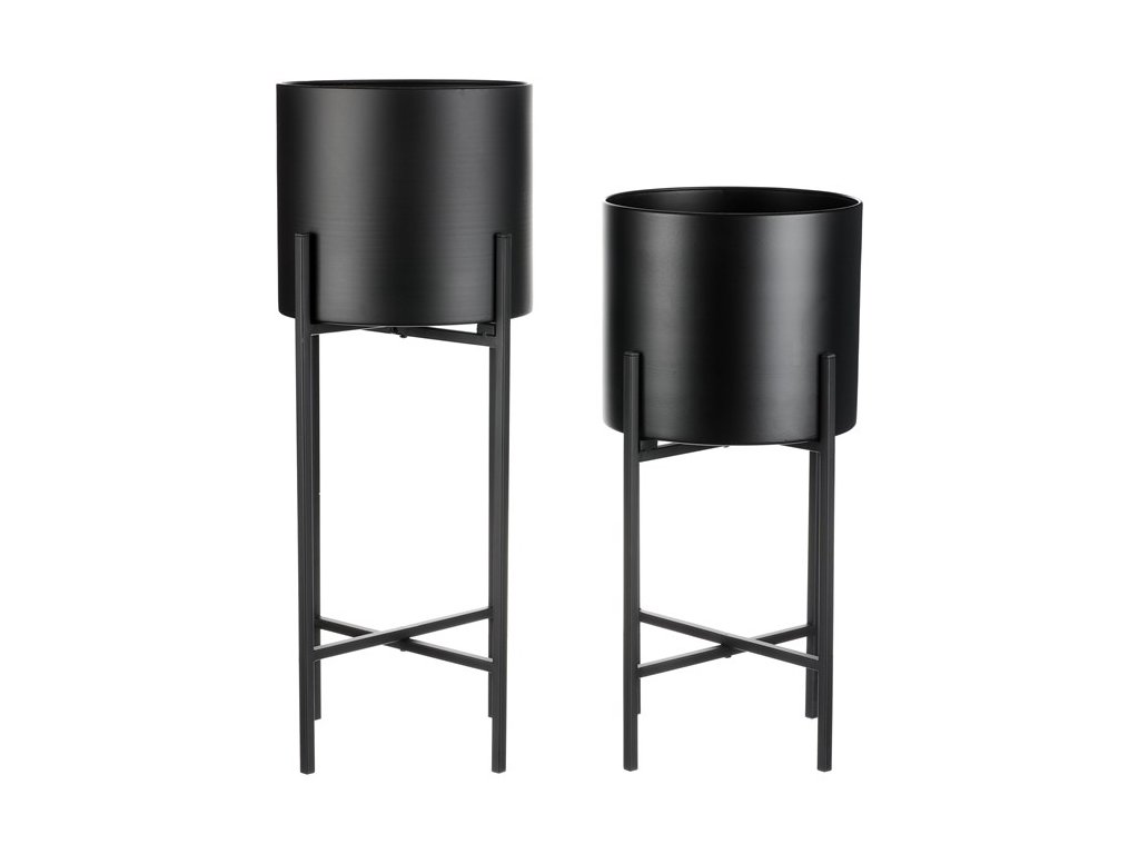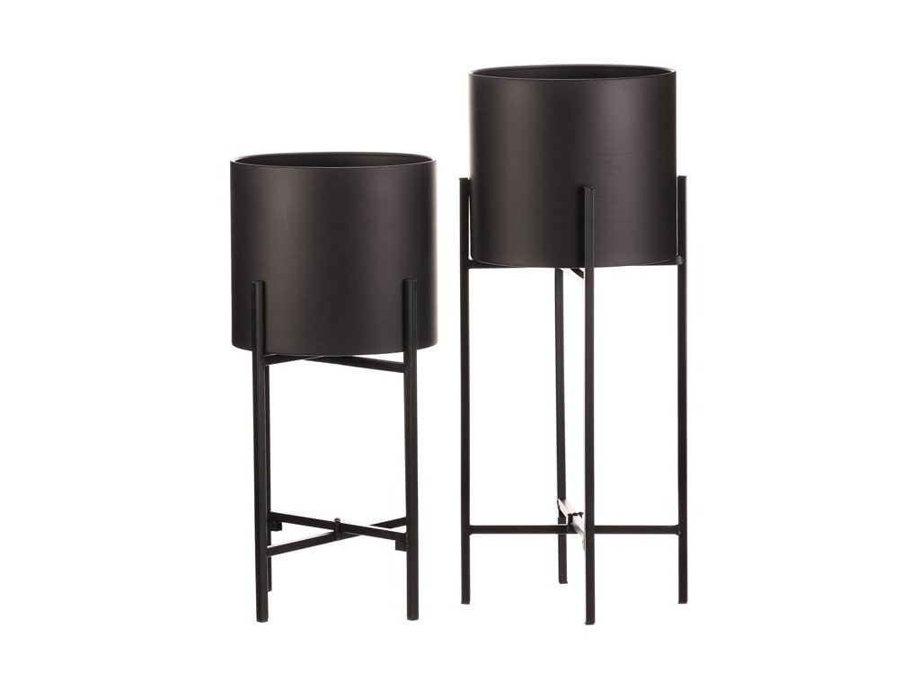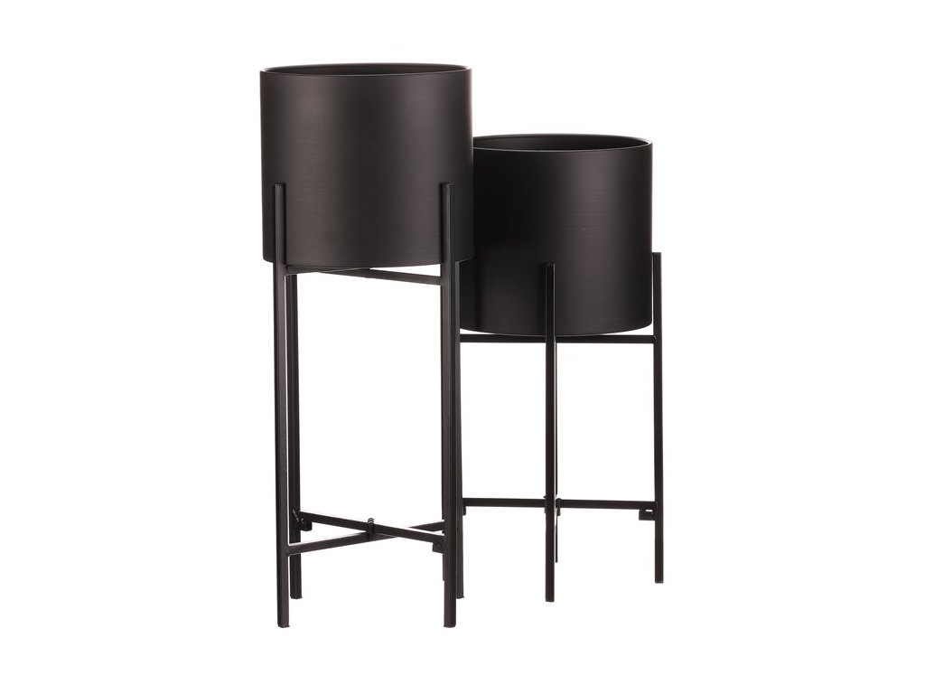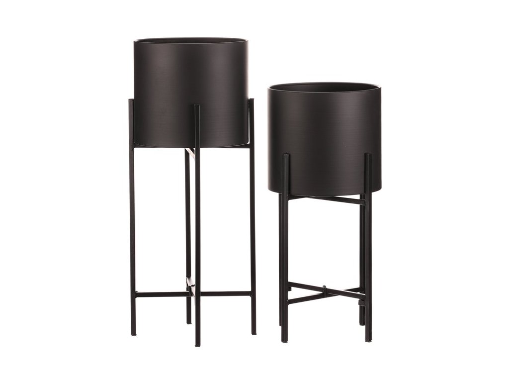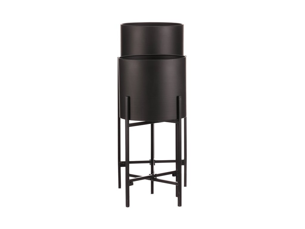 Set 2 ks kovových stojanů na květiny. interiérové provedení. Konstrukce a obal na květináč je kovový, v povrchové úpravě černý mat.
