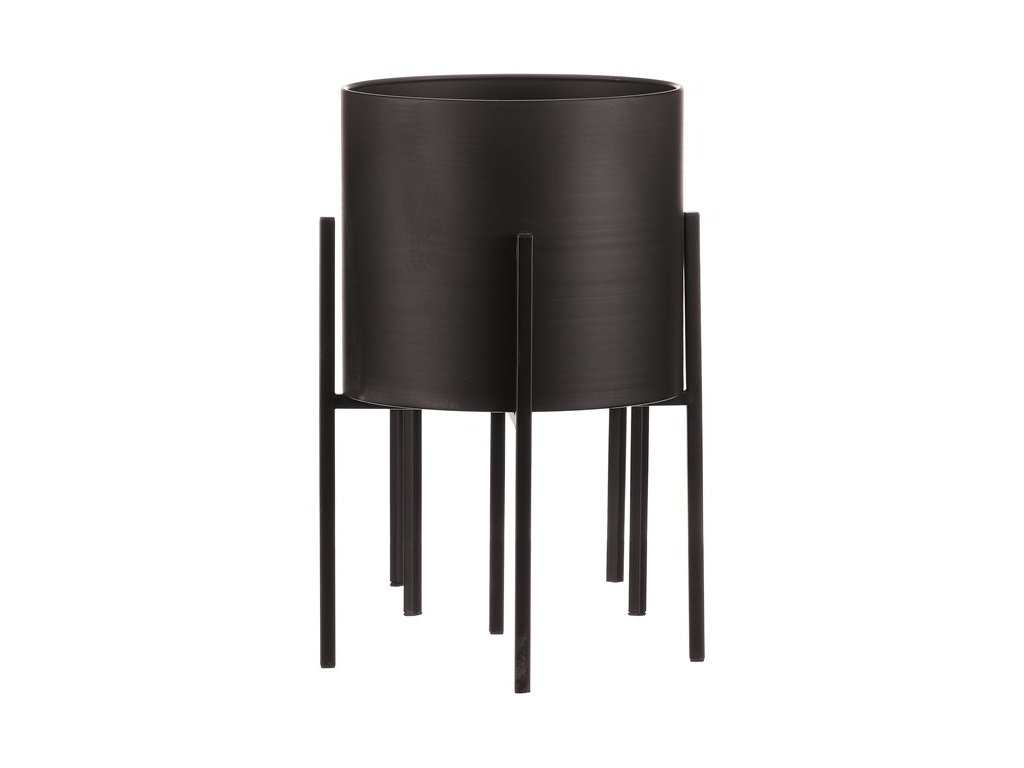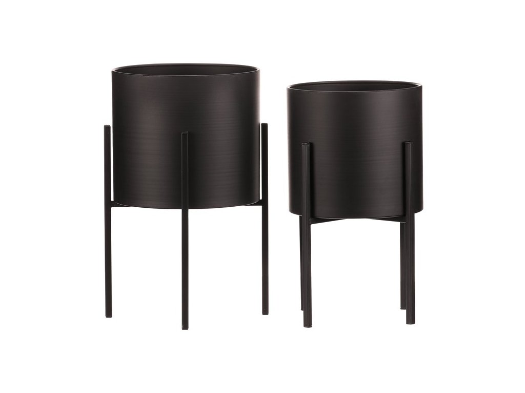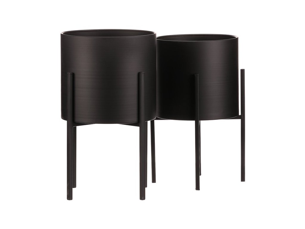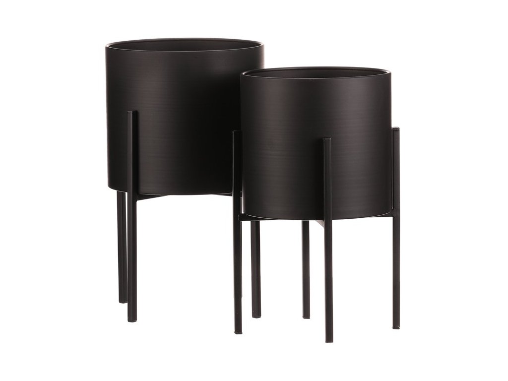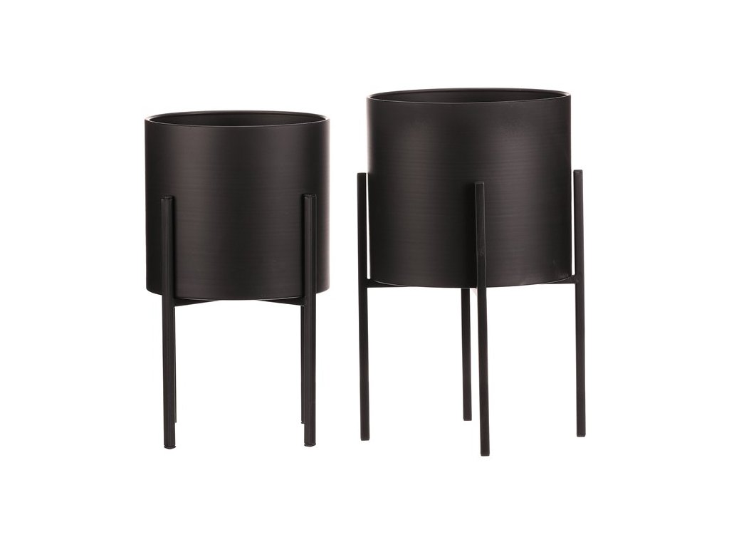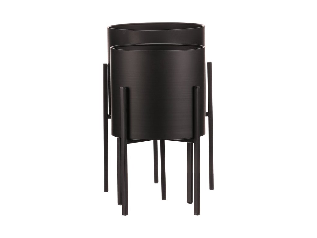 Set 2 ks kovových stojanů na květiny. interiérové provedení. Konstrukce a obal na květináč je kovový. Obal je v černém matu a nohy ve zlaté matné barvě.