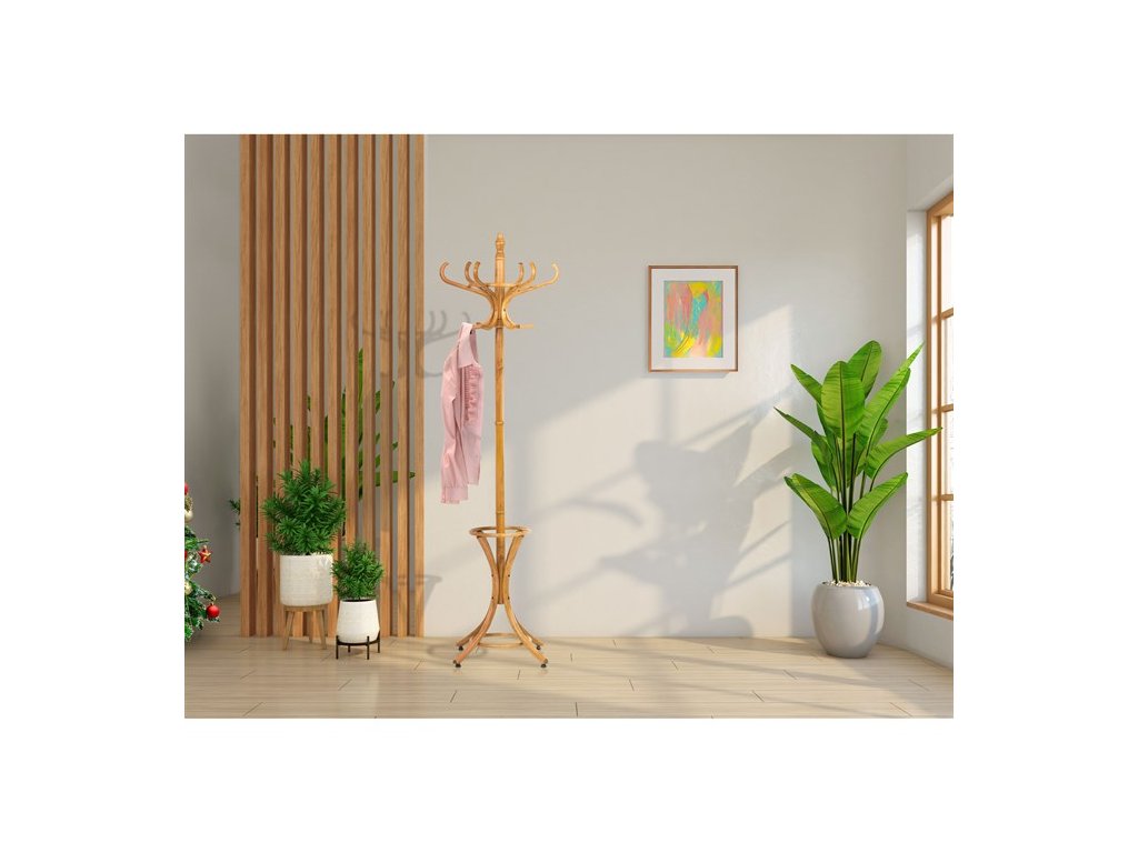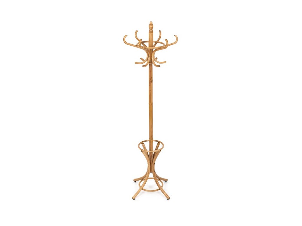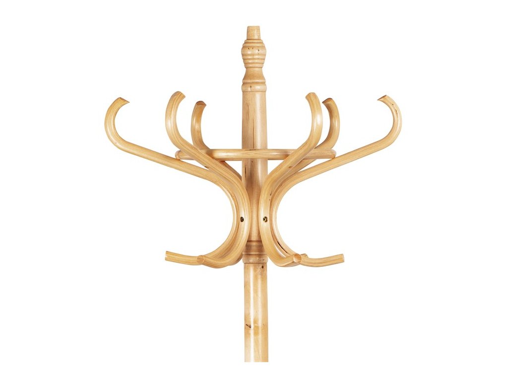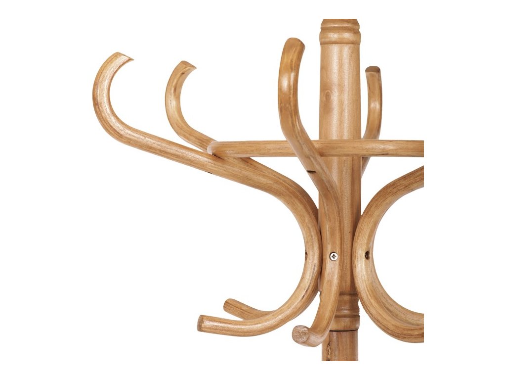 Stojanový věšák z masivu v tmavě hnědém laku kombinuje pevnost topolu a břízy s tradičním designem. Jeho tělo tvoří stabilní noha s elegantně prohnutými háčky uspořádanými ve dvou úrovních, které nabízejí dostatek prostoru pro zavěšení kabátů, klobouků či šál. Pevná základna s rozšířenými nohami zajišťuje stabilitu i při plném zatížení. Výška 185 cm umožňuje pohodlné používání v předsíních, kancelářích či čekárnách. Povrchová úprava tmavým lakem podtrhuje přírodní kresbu dřeva a usnadňuje údržbu.
