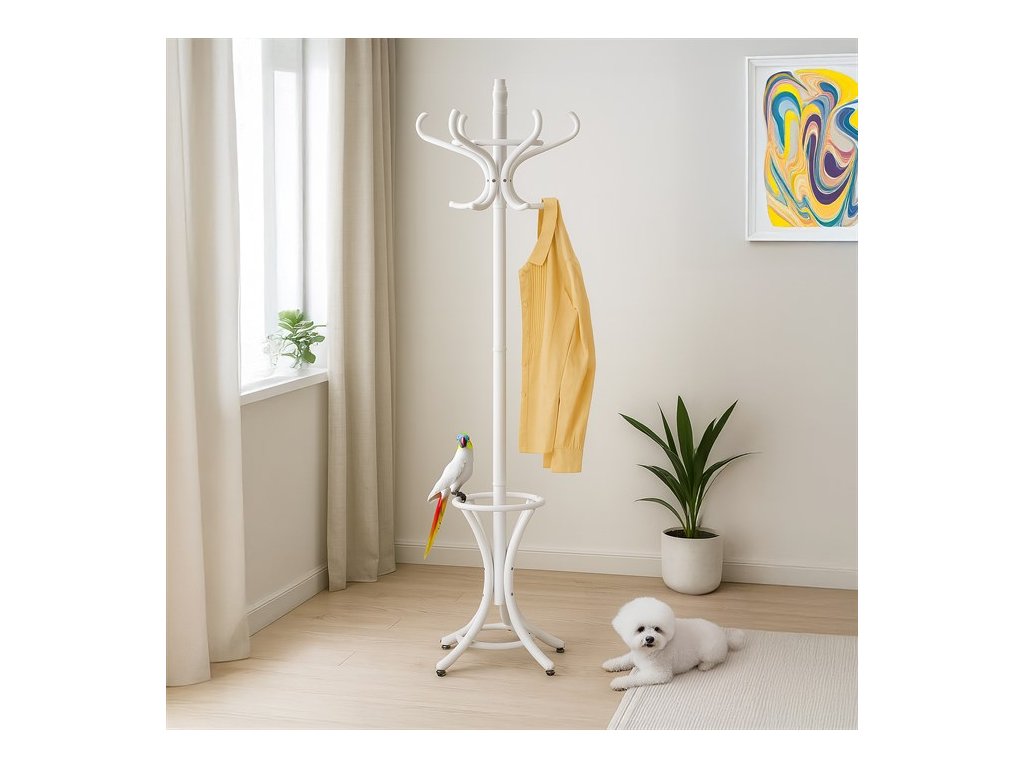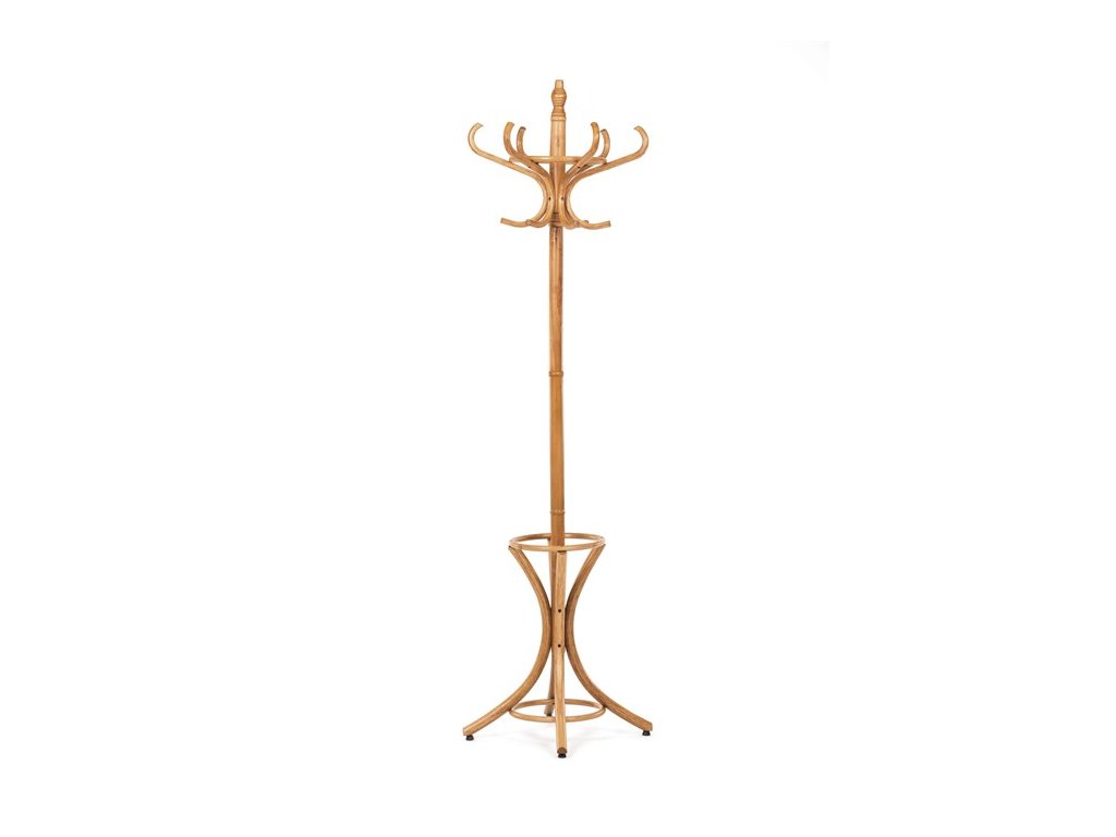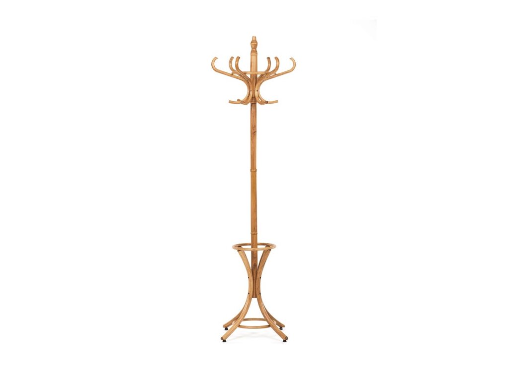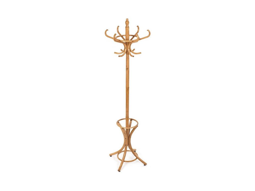 Stojanový věšák z masivu v tmavě hnědém laku kombinuje pevnost topolu a břízy s tradičním designem. Jeho tělo tvoří stabilní noha s elegantně prohnutými háčky uspořádanými ve dvou úrovních, které nabízejí dostatek prostoru pro zavěšení kabátů, klobouků či šál. Pevná základna s rozšířenými nohami zajišťuje stabilitu i při plném zatížení. Výška 185 cm umožňuje pohodlné používání v předsíních, kancelářích či čekárnách. Povrchová úprava tmavým lakem podtrhuje přírodní kresbu dřeva a usnadňuje údržbu.