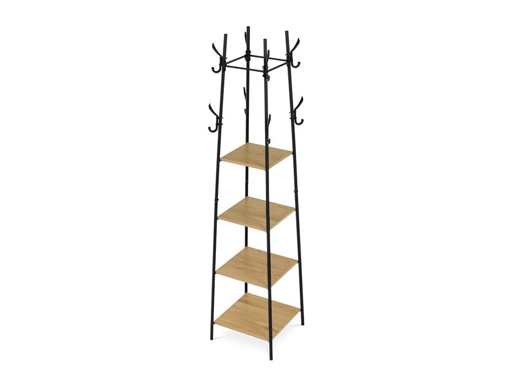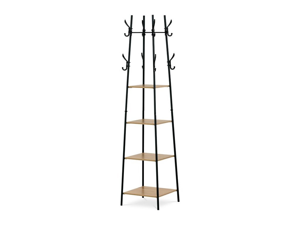 Věšák značky Autronic s praktickými policemi a industriálním designem je ideálním řešením pro organizaci a dekoraci vaší předsíně nebo ložnice. Kombinace dekoru divokého dubu a černého kovového rámu dodává interiéru moderní charakter. Čtyři prostorné police nabízí dostatek místa pro odkládání doplňků, klobouků nebo bot, zatímco háčky umožňují zavěšení kabátů a tašek. Tento multifunkční kousek spojuje styl a praktičnost, což ocení každý, kdo hledá designový a účelný doplněk pro svůj domov.