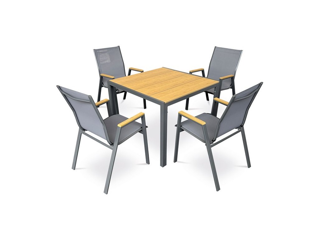 Čtvercový zahradní stůl značky Autronic je skvělým doplňkem pro každé venkovní posezení. Stůl kombinuje elegantní polywood s kovovou konstrukcí v barvách antracitu. Dubový odstín desky dodává přírodní vzhled, který se hodí do jakéhokoliv prostředí. Povrch je navíc odolný proti poškrábání, což zaručuje jeho snadnou údržbu. Stabilní čtyřnohé podnoží s práškovou úpravou proti vnějším vlivům dělá z tohoto stolu ideální volbu pro zahrady či terasy, kde chcete stylově a pohodlně trávit volný čas.